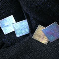 左上から、小さなおりん(仏具)・帯留め「富士山」・和服にも合うブローチ・帯留め・小型帯留め・イチョウのブローチ